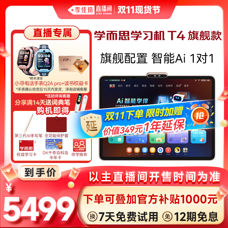 【享李佳琦直播间专属加赠】学而思学习机T4幼小学初中高中通用t4智能平板学练机AI辅导大屏护眼儿童学生平板