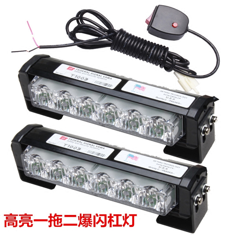 汽车中网灯 高亮一拖二爆闪灯 摩托车开道警示灯 可变光三色灯日