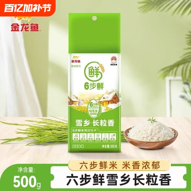 金龙鱼6步鲜雪乡长粒香米500g东北大米一斤粳米新米小袋批发食用