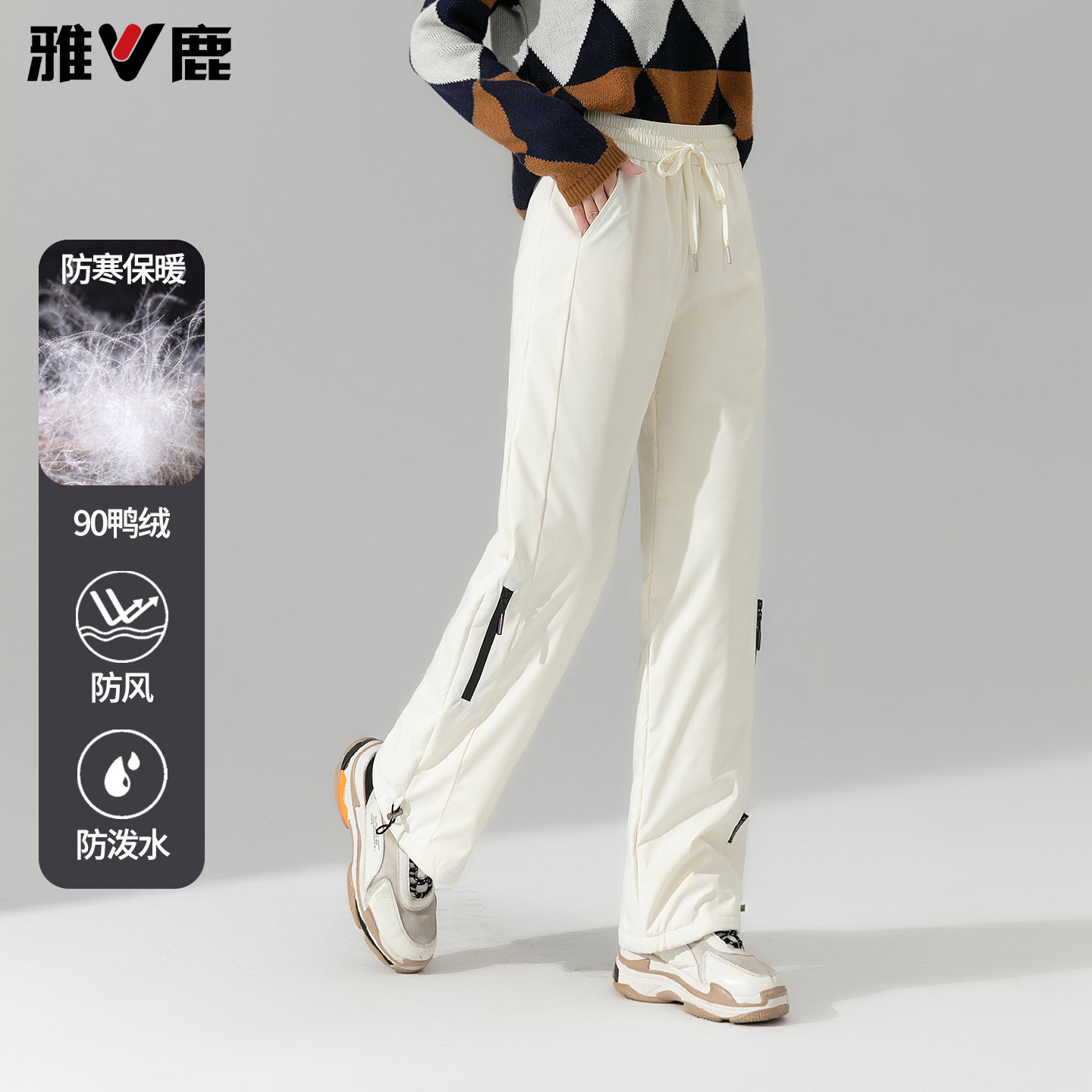 雅鹿防风防寒时尚西装羽绒裤女外穿东北雪乡加厚保暖高腰宽松棉裤