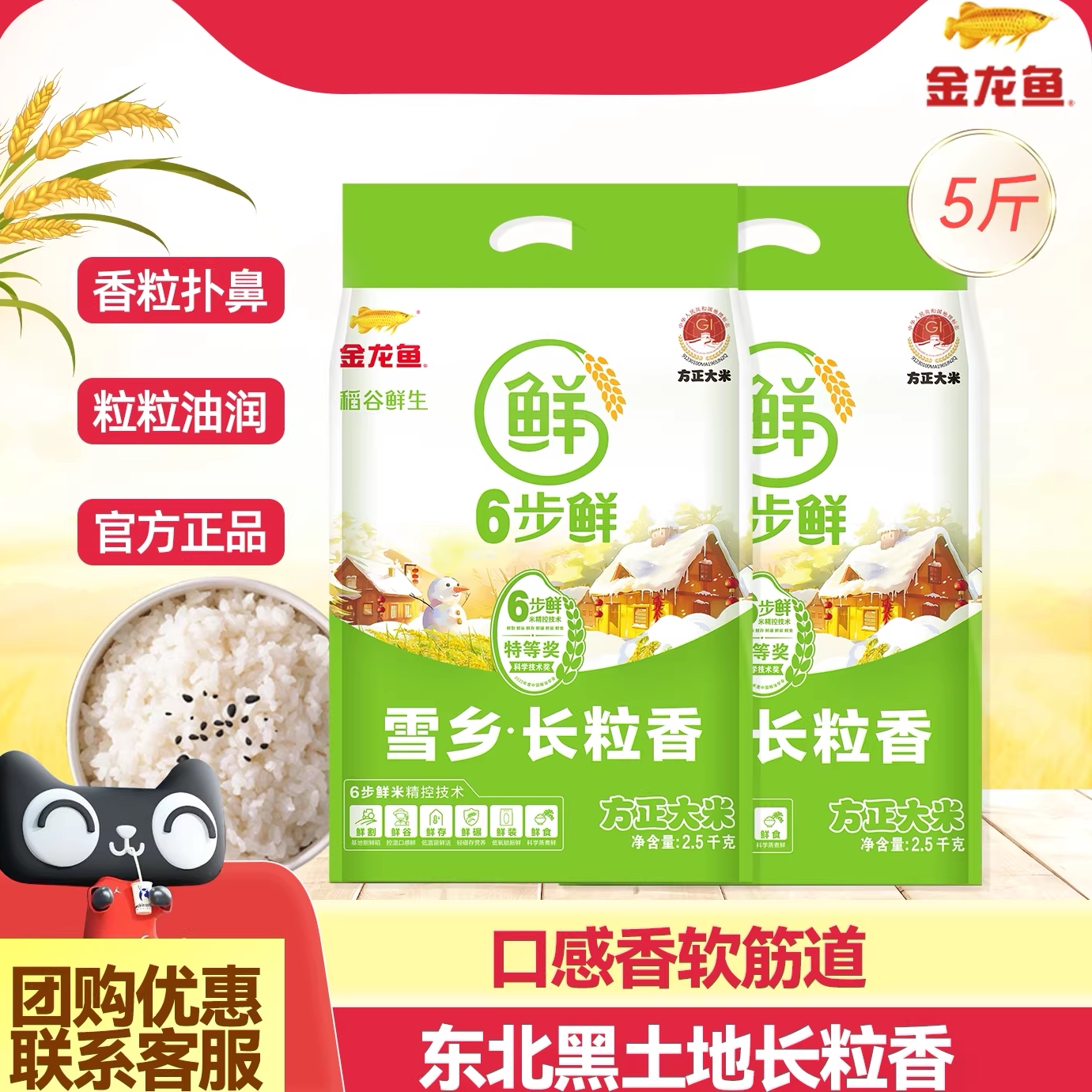 金龙鱼6步鲜雪乡长粒香大米2.5kg东北方正香米便宜煮饭5斤装批发