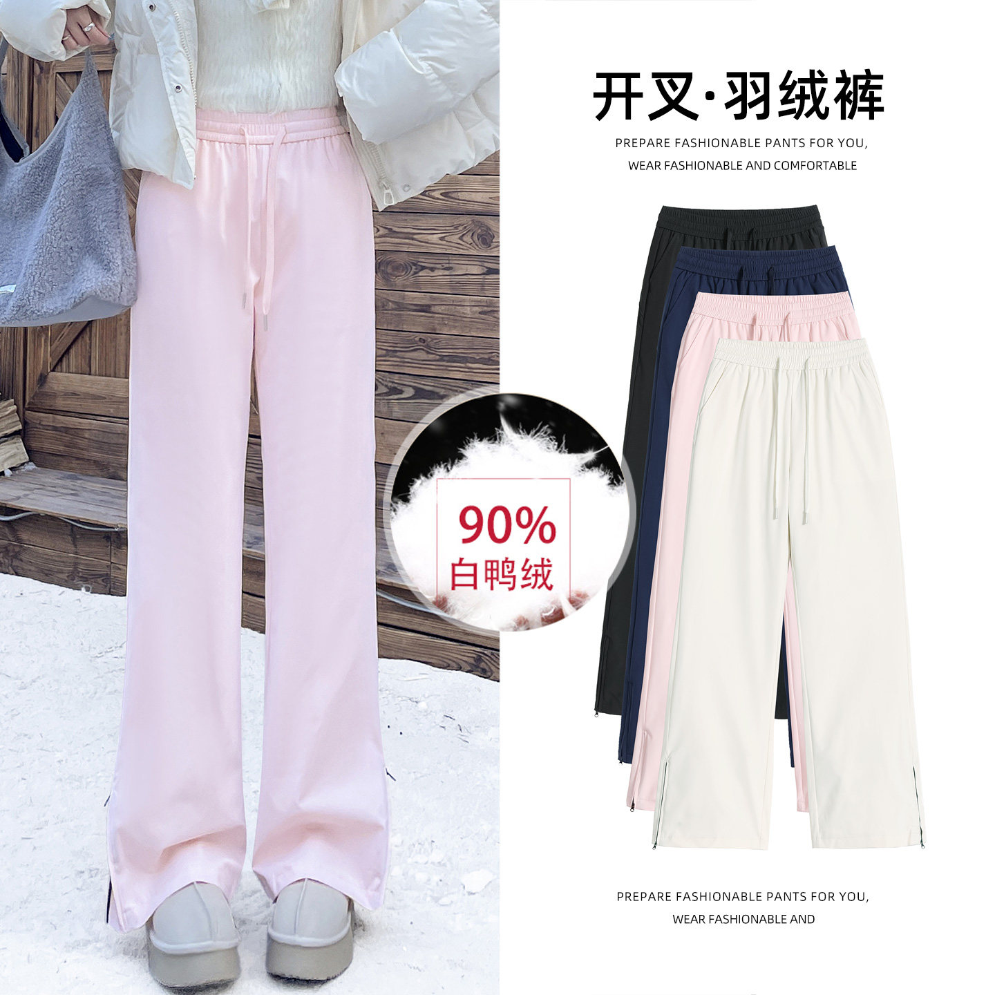 羽绒喇叭裤女外穿冬季新款东北雪乡滑雪微喇防水脚口侧拉链休闲裤
