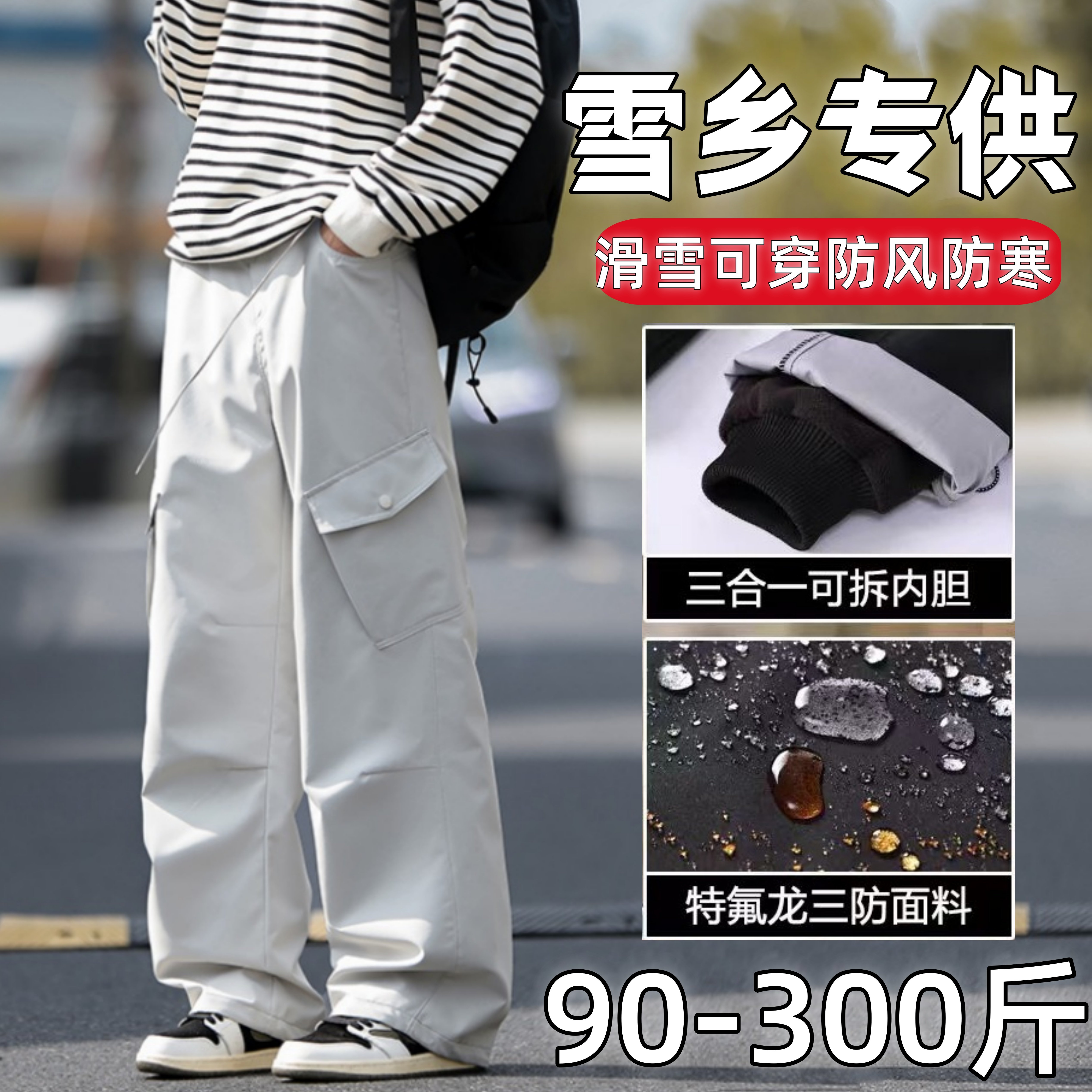 大码三合一软壳裤东北雪乡滑雪裤加厚男式三防进藏保暖冲锋裤男款