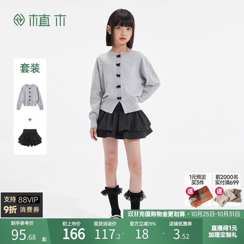 植木童装女童套装2025秋冬新款中大童圆领毛衣半身裙套装儿童套装