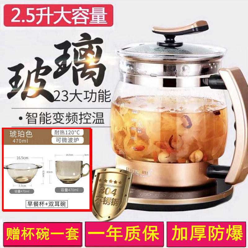 全自动玻璃养生壶2.5L煲汤煮粥养生壶3升大容量煎药壶泡茶多功能