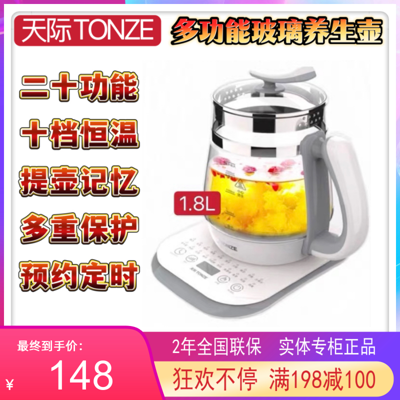 天际玻璃养生壶办公家用多功能花茶壶全自动煮粥BB煲汤保健壶1.8L