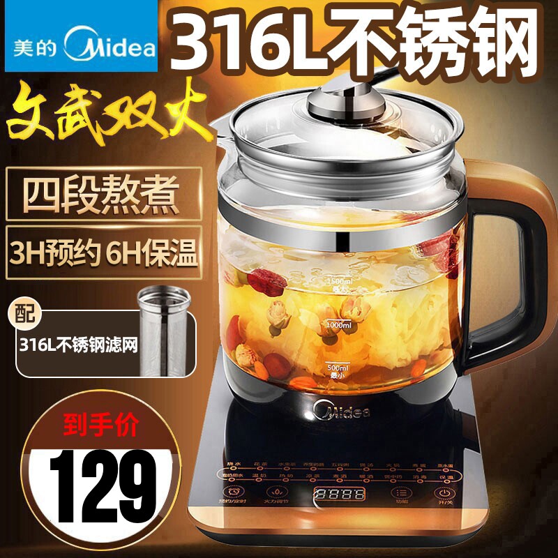 美的养生壶全自动加厚玻璃煎中药壶多功能煮茶器电水壶煲汤烧水壶