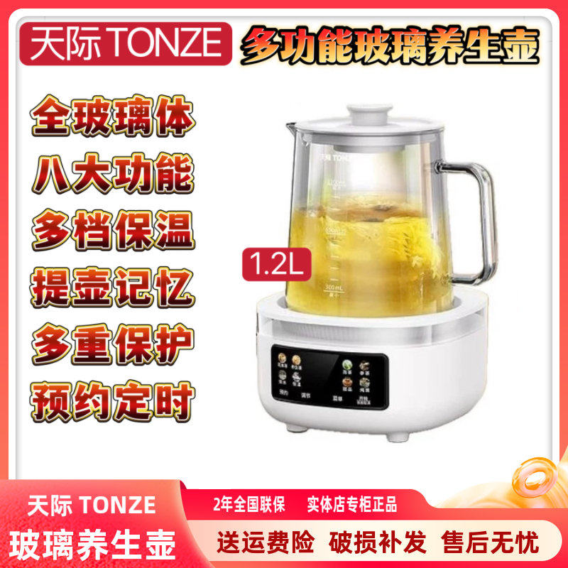 天际玻璃养生壶多功能花茶壶全自动煮粥煲汤保健壶1.2L无金属接触