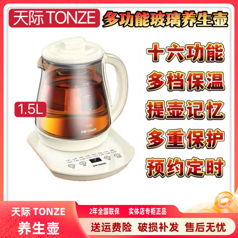 天际玻璃养生壶多功能花茶壶全自动煮粥煲汤保健壶1.5升304不锈钢