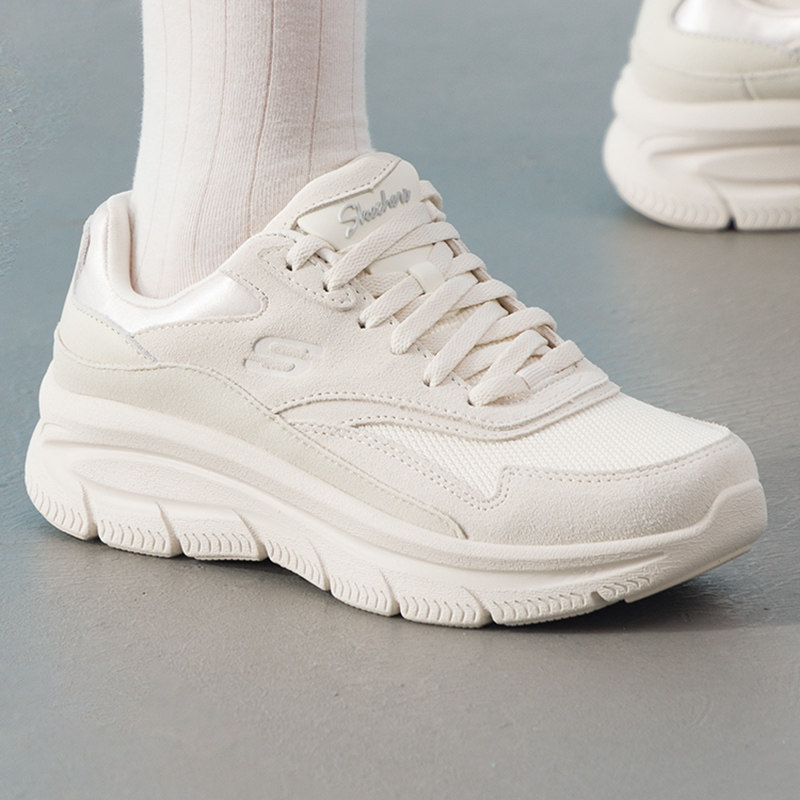 斯凯奇女鞋春季新款奶茶熊猫鞋女款增高休闲鞋官方正品女士运动鞋