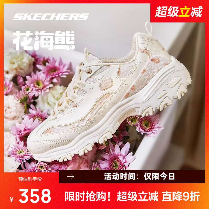 斯凯奇花海熊新款增高老爹鞋女士厚底鞋子休闲透气运动鞋时尚百搭