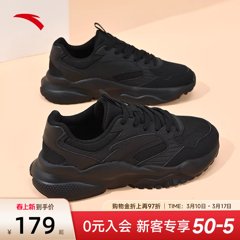 安踏黑色运动鞋女鞋2026新款女士鞋子全黑女款上班不累脚黑鞋女冬