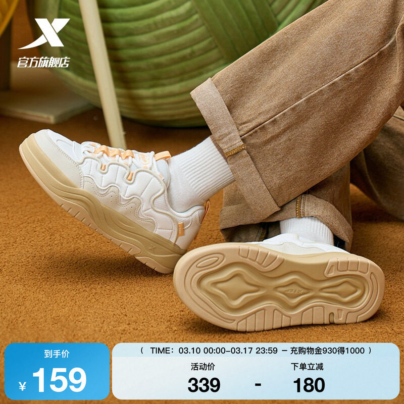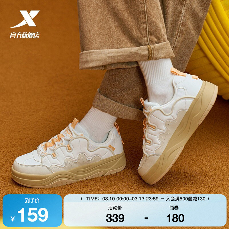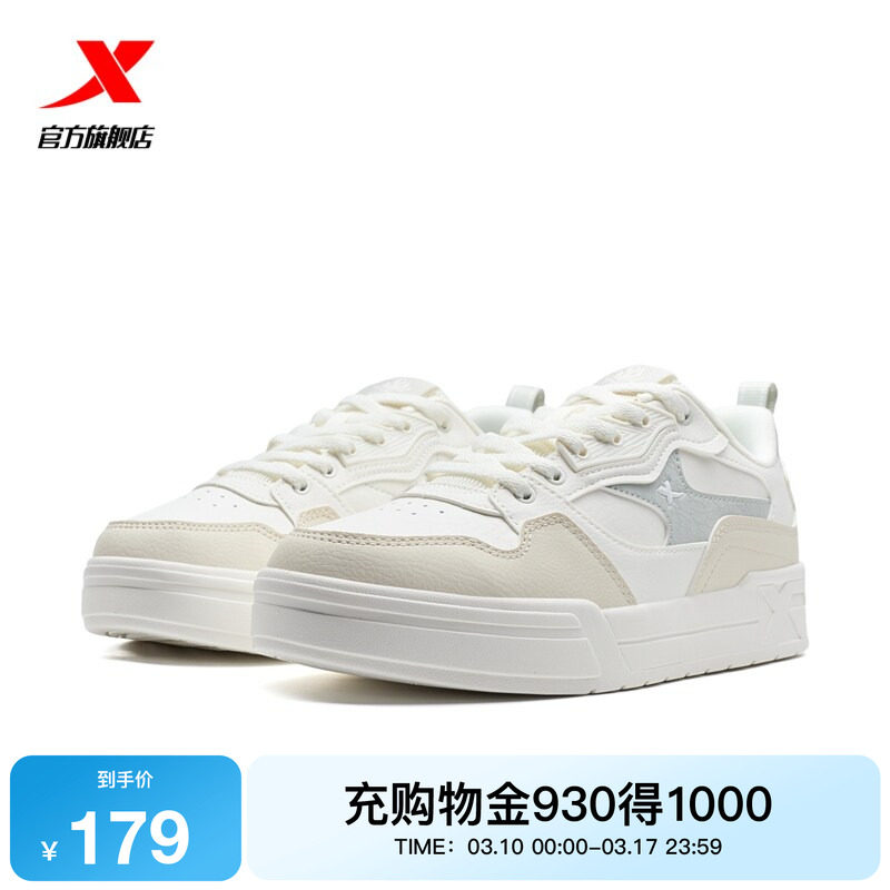 特步女鞋2026春季新款板鞋平底休闲鞋小白鞋女士运动鞋厚底增高鞋
