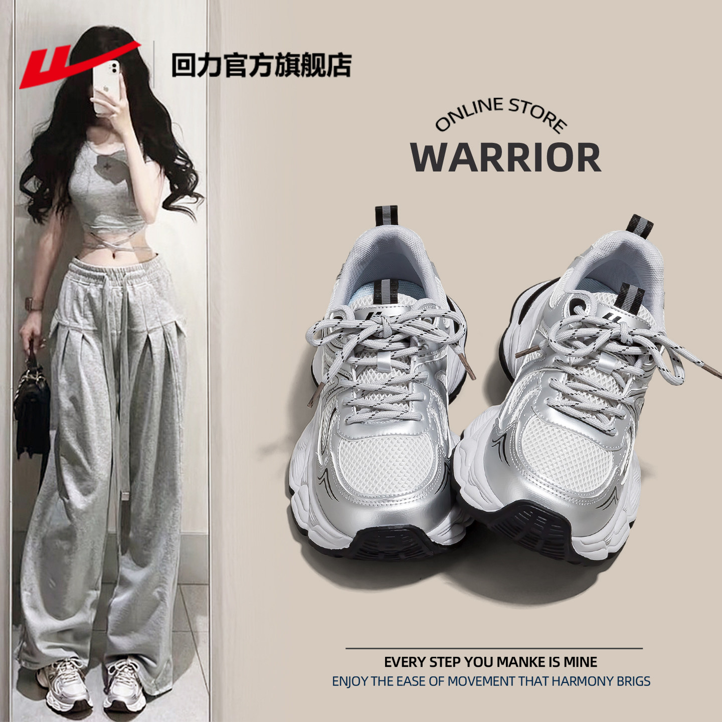 回力官方旗舰店女鞋银色老爹鞋女款2026新款春季鞋子女士运动鞋女