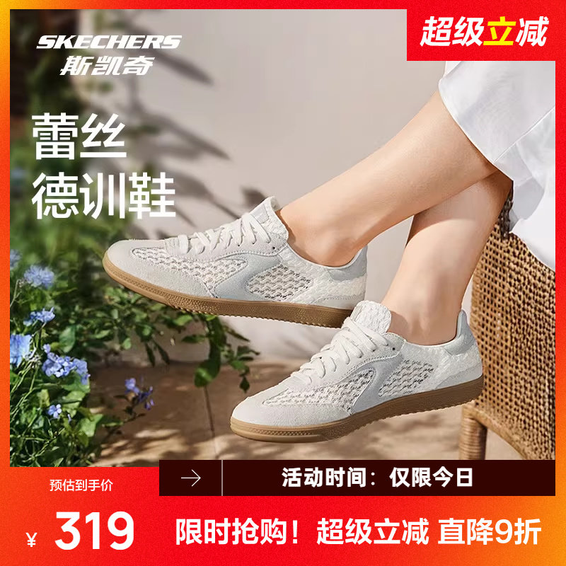斯凯奇蕾丝德训鞋夏季新款休闲板鞋女士运动鞋舒适支撑网面高透气