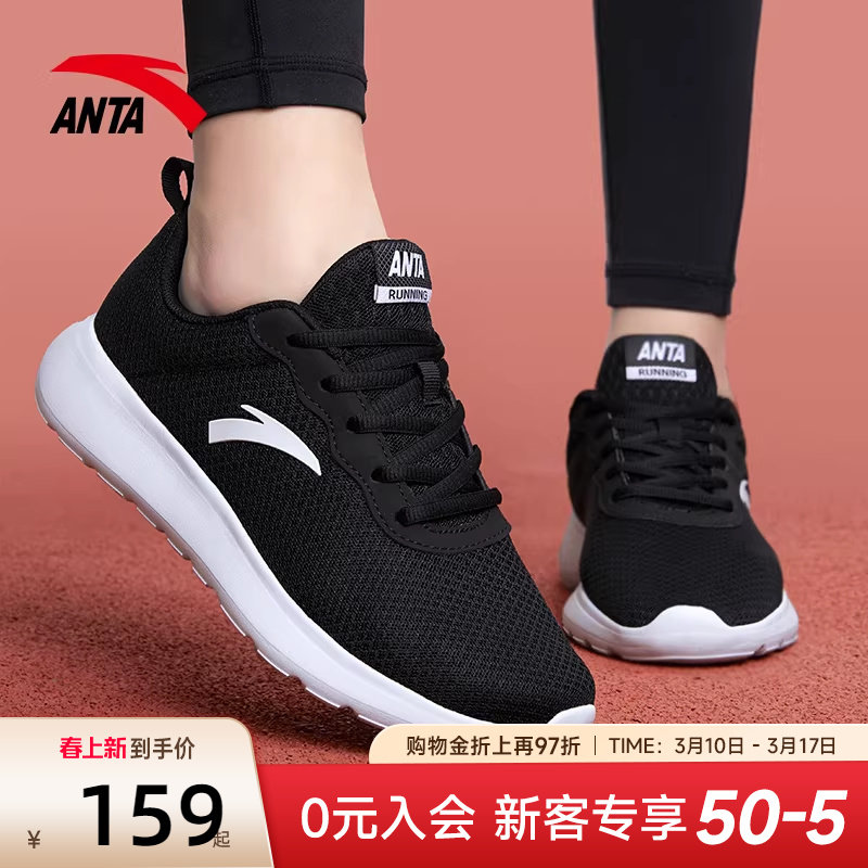 安踏女鞋运动鞋女款2026新款妈妈正品黑色透气软底女士跑步鞋子