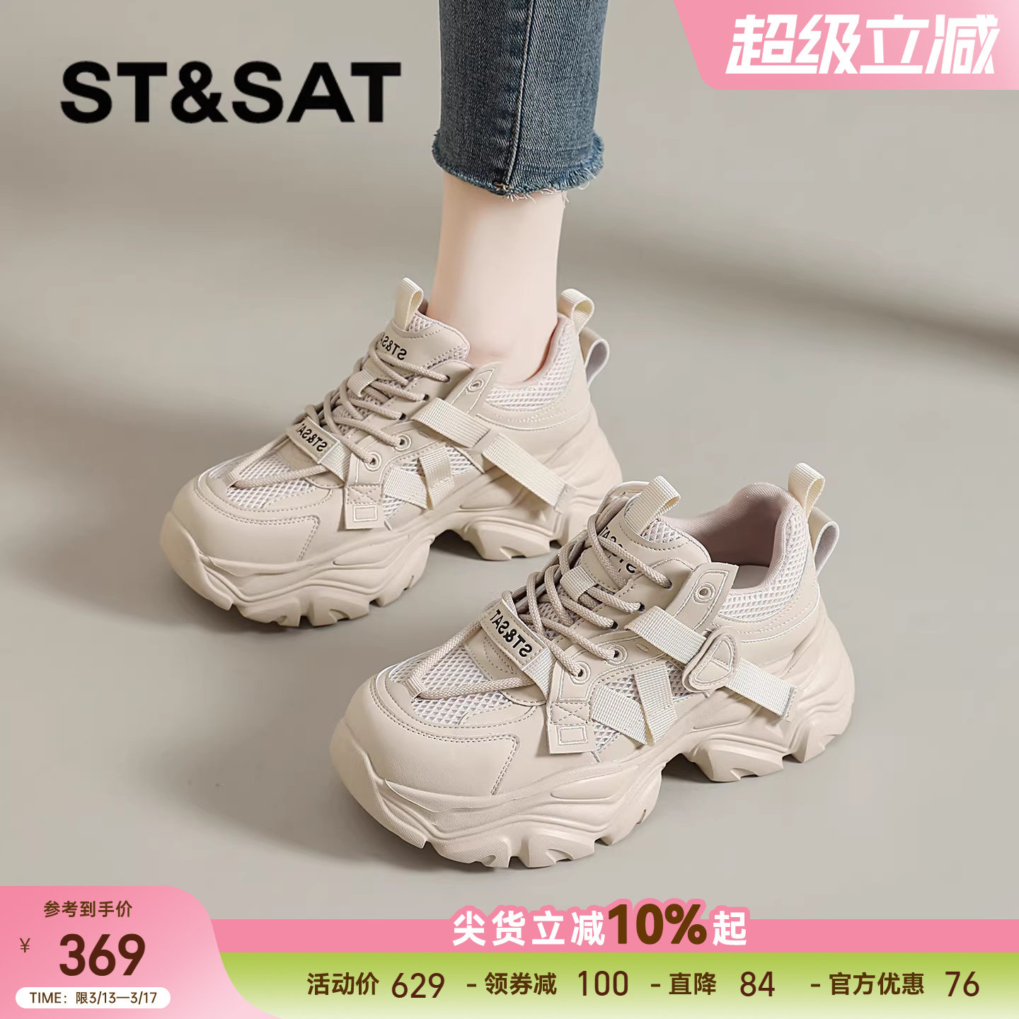 星期六老爹鞋女春季新款小个子增高厚底鞋显脚小休闲鞋女士运动鞋