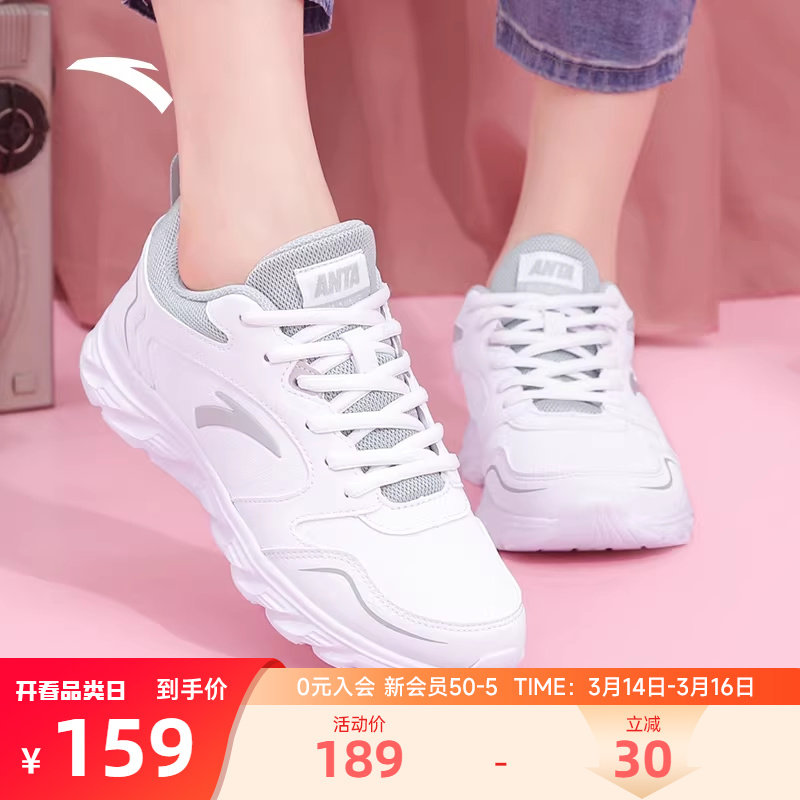 安踏女鞋运动鞋2026新款防水休闲鞋正品女士软底小白鞋皮面跑步鞋