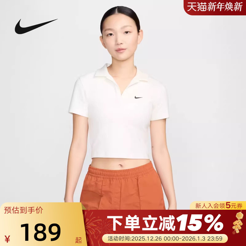 nike耐克女T恤夏季短款修身刺绣运动短袖深V翻领POLO衫DV7885-133
