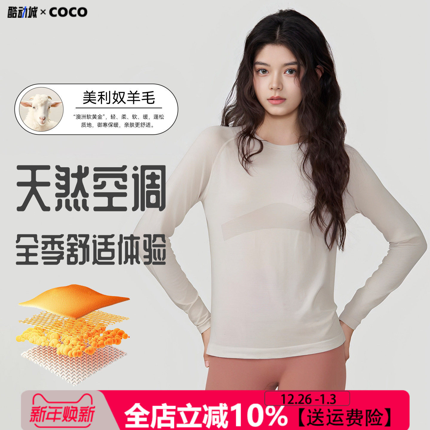 【美利奴羊毛】速干衣瑜伽长袖女T恤健身普拉提休闲圆领运动上衣