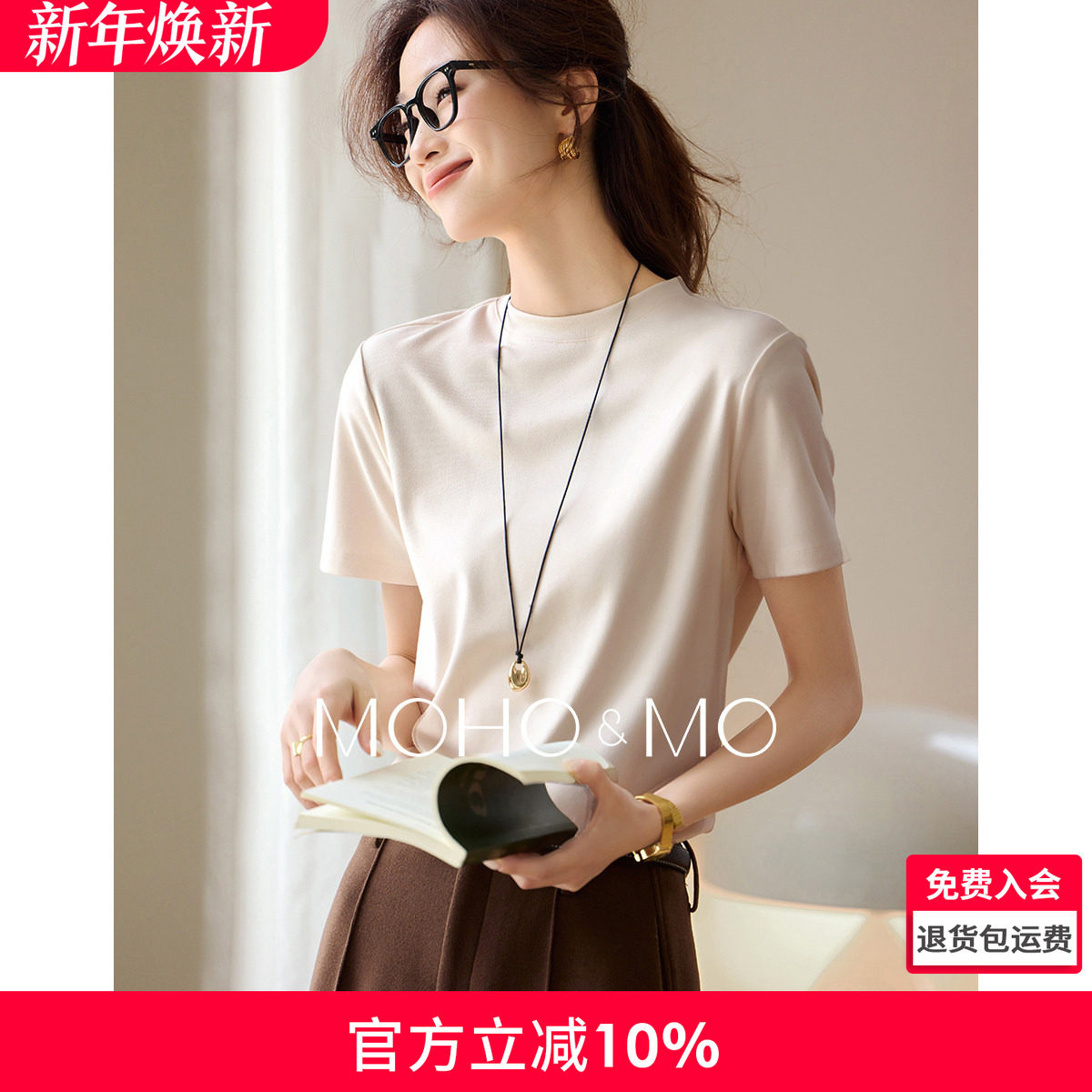 沫晗依美休闲时尚通勤女T恤2025夏季新款简约百搭中袖基础打底衫