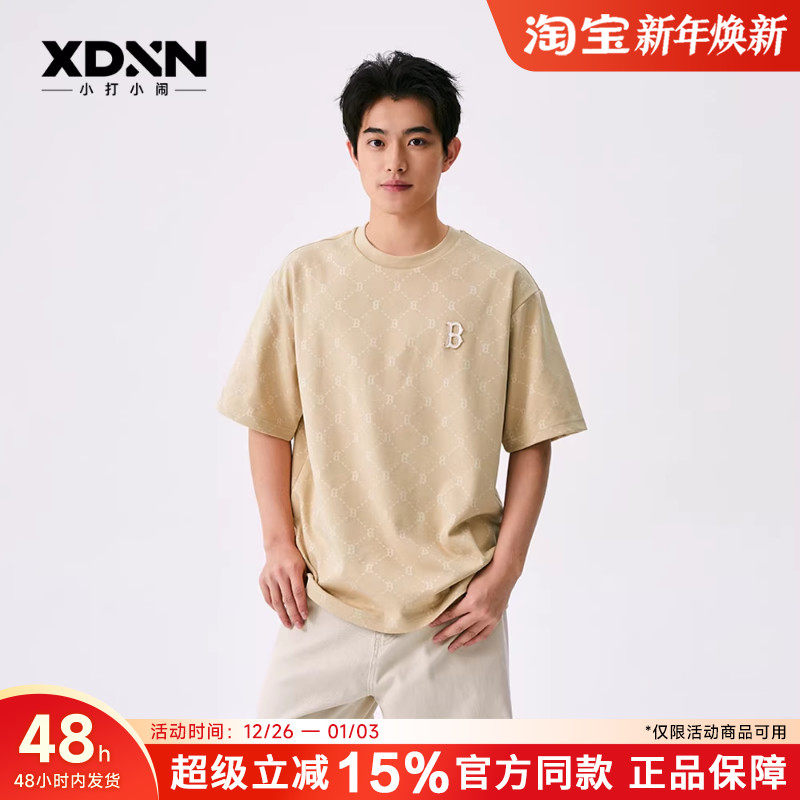 MLB 25秋季官方张凌赫同款短袖男钻石老花宽松半袖透气女T恤TSM01