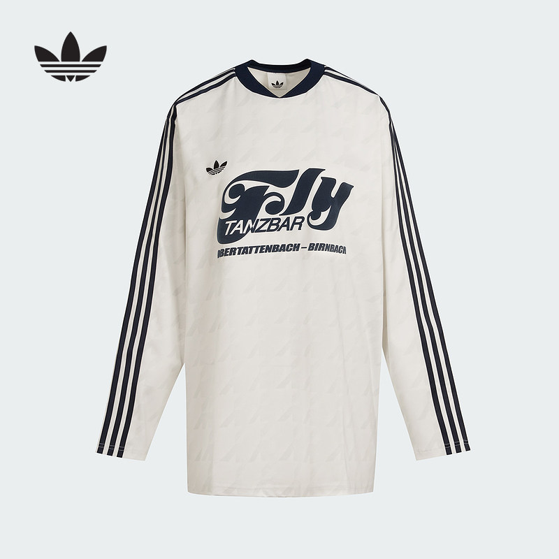 adidas阿迪达斯秋新款三叶草足球衫长袖宽松球衣女T恤上衣 KF9612