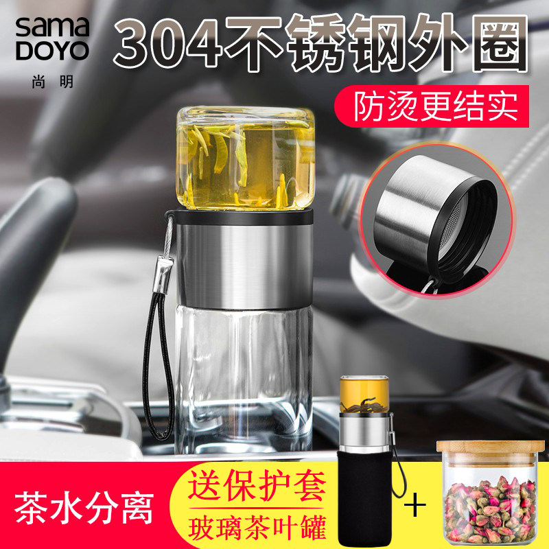 尚明茶水分离双层玻璃杯便携式泡茶保温杯男士水杯刻字定制印logo