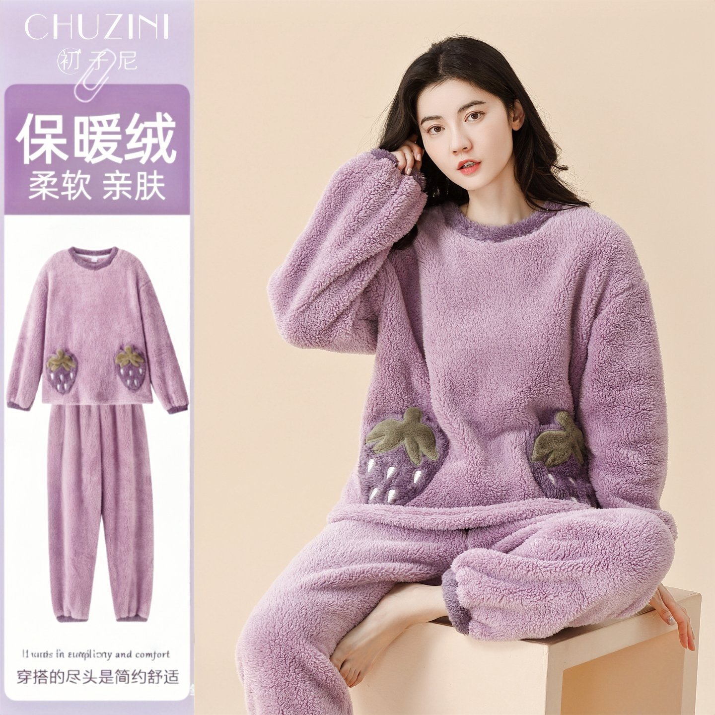 珊瑚绒睡衣女冬季2025新款加厚加绒保暖法兰绒春秋冬款家居服套装