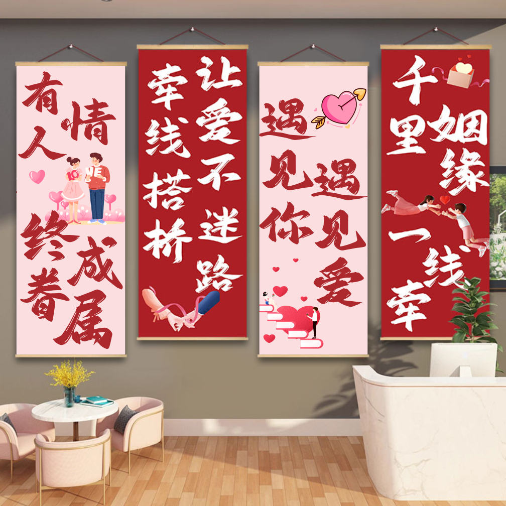 婚介公司装饰画婚恋婚姻中心室内墙面装饰挂布相亲告白标语墙贴纸