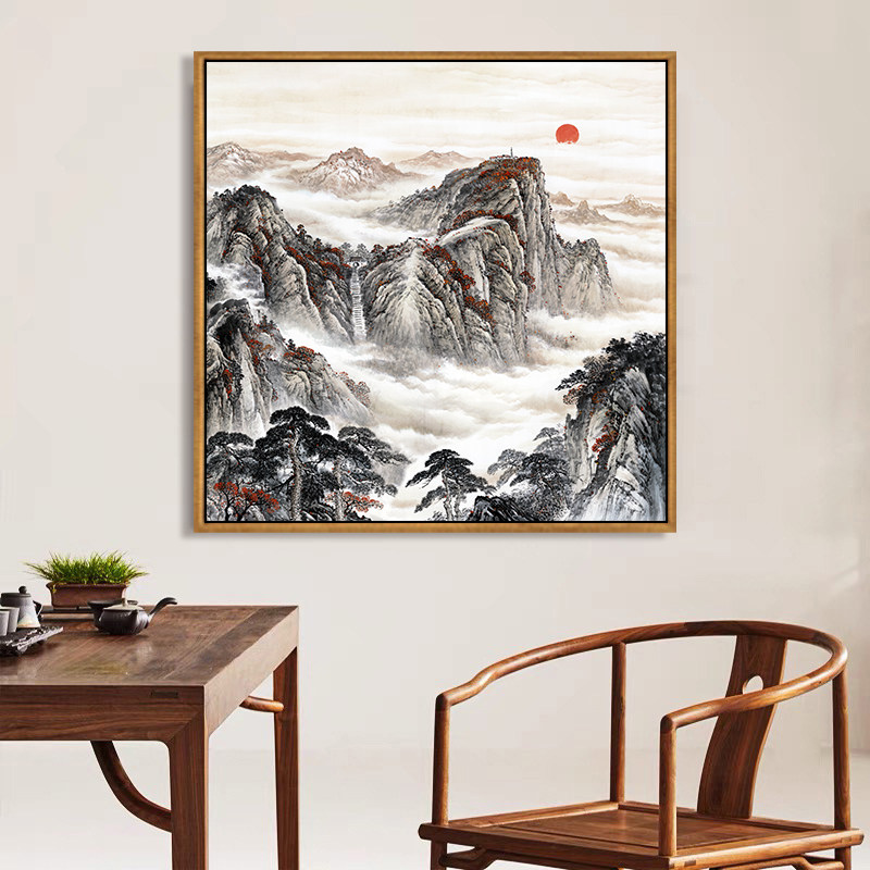 正方形挂画靠山字画走廊公司装饰画玄关新中式旺财山水画风景壁画