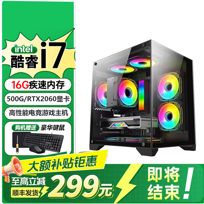 组装电脑台式全套高配主机游戏型吃鸡RTX2060/i7网吧办公家用组合