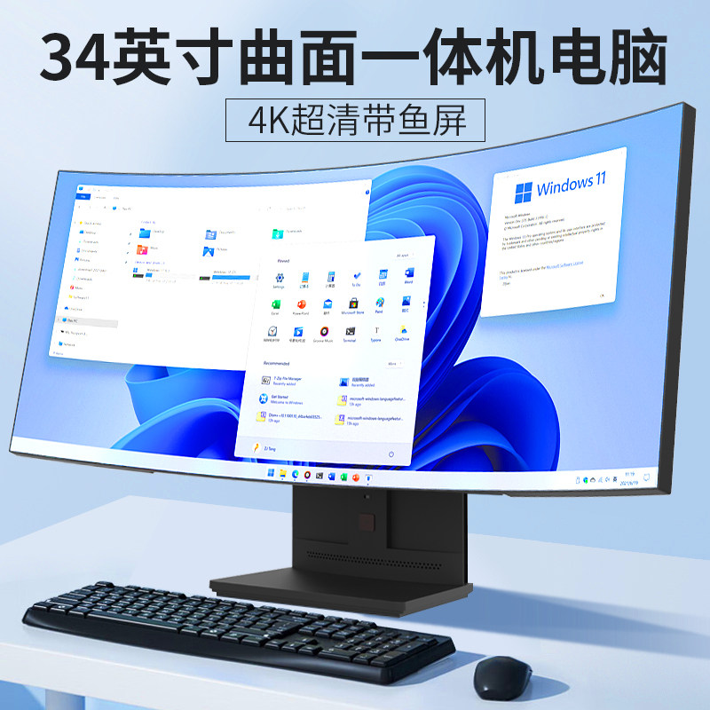 新款34英寸4K曲面带鱼屏超薄台式一体机电脑电竞直播设计游戏全套