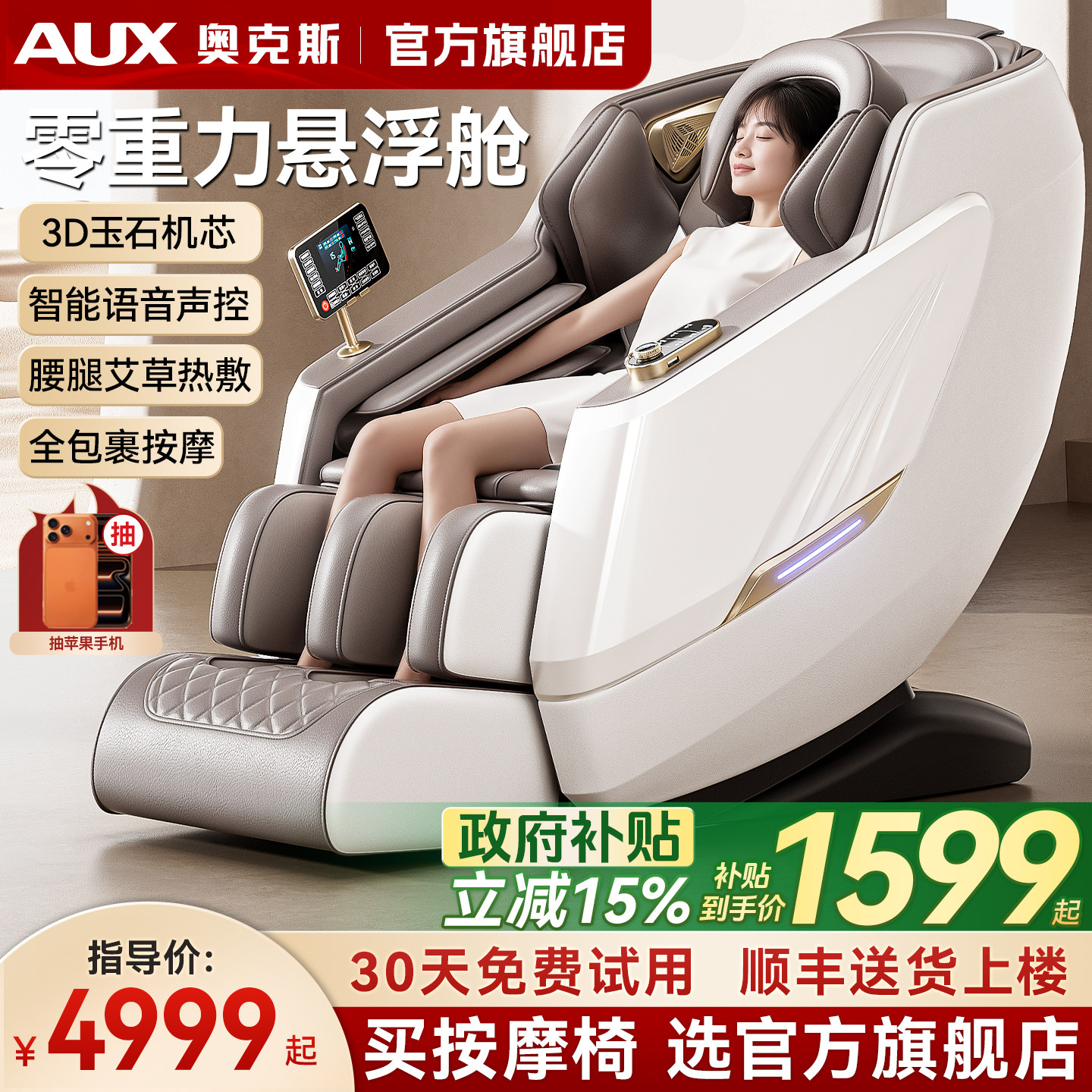 奥克斯按摩椅4860家用全身电动多功能全自动智能小型太空舱旗舰店