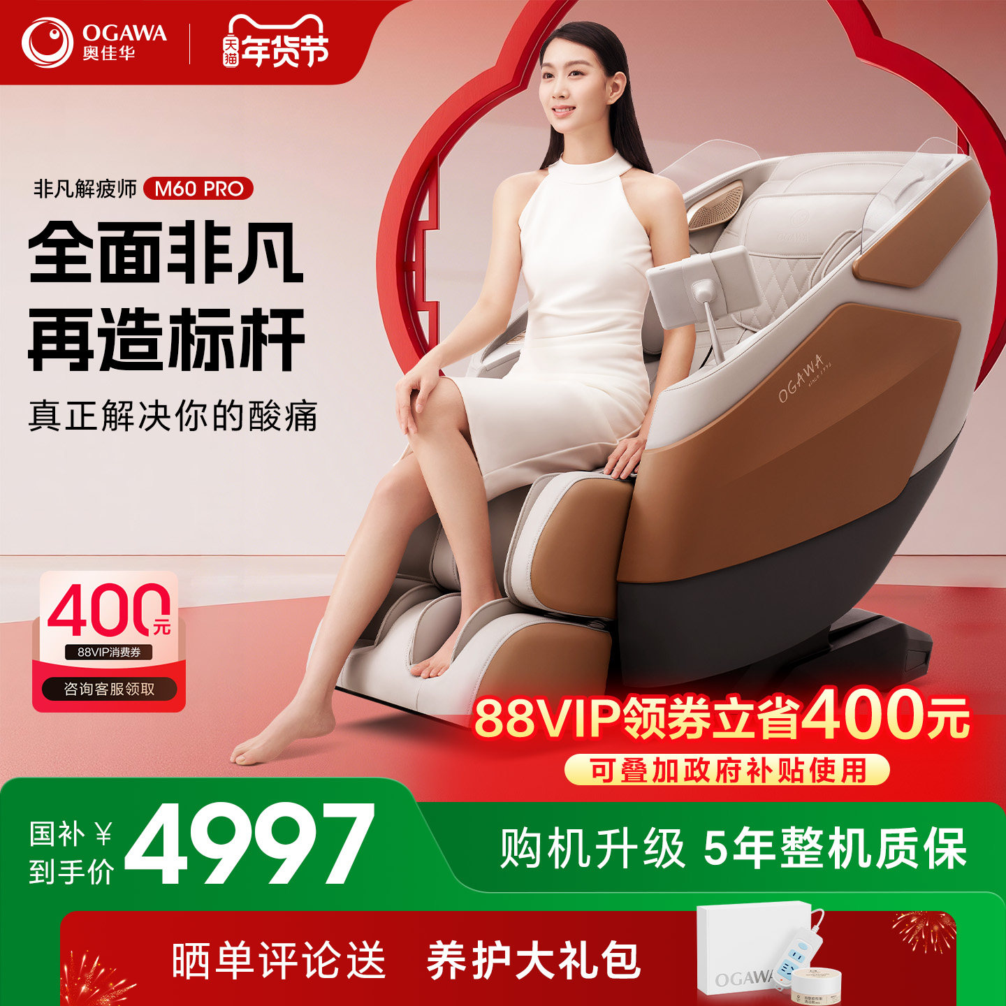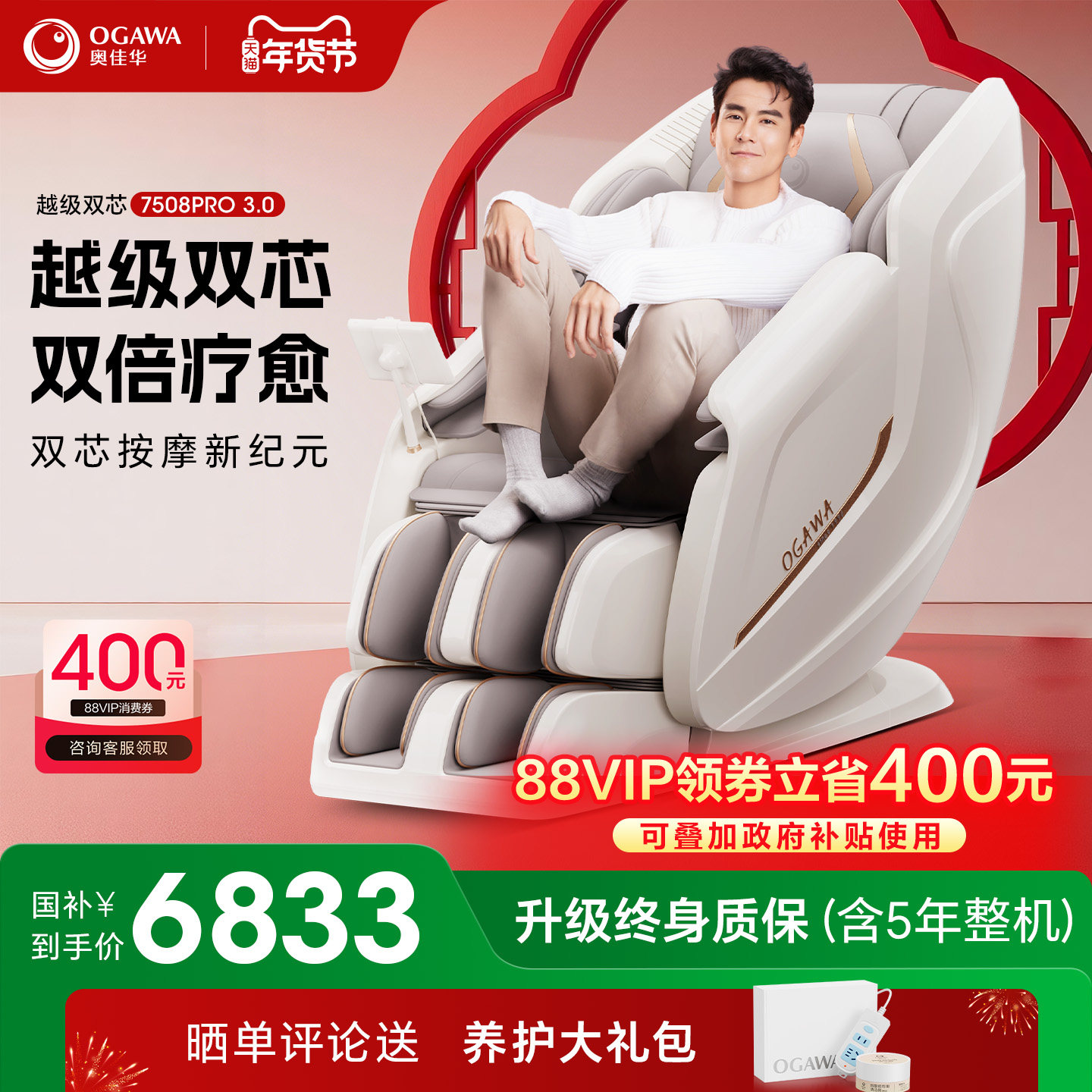 【政府补贴15%】奥佳华按摩椅全身家用太空舱按摩沙发7508Pro3.0