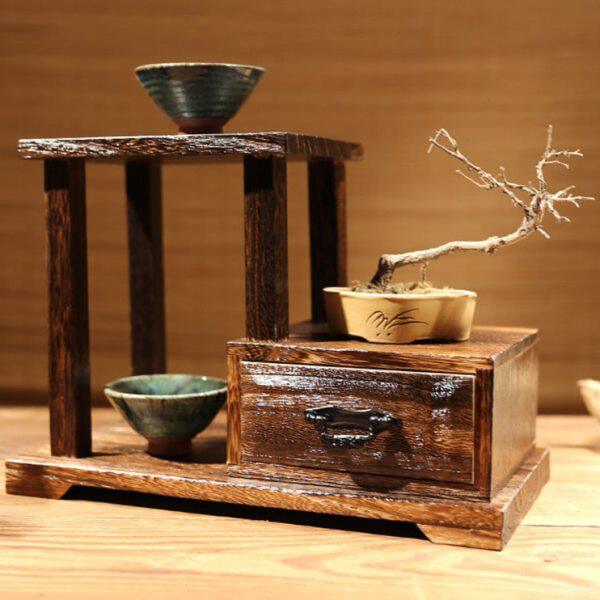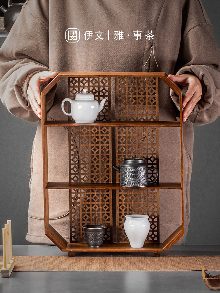 桌面茶杯架子茶桌复古博古架茶叶茶具置物架台式小型摆放展示收纳