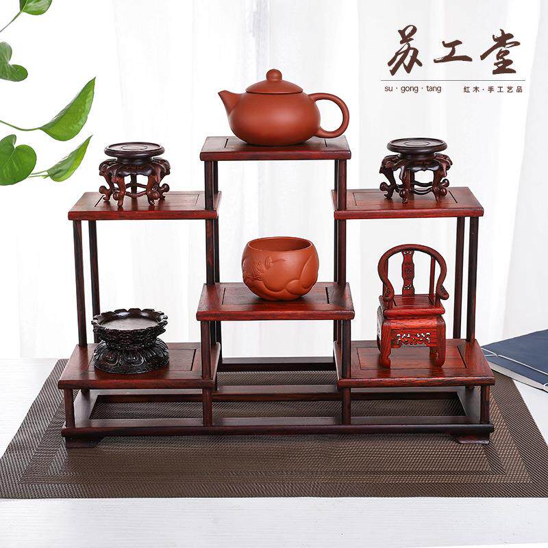 紫光檀博古架 小型工艺品展示架实木多宝阁置物架茶壶架厂家直销