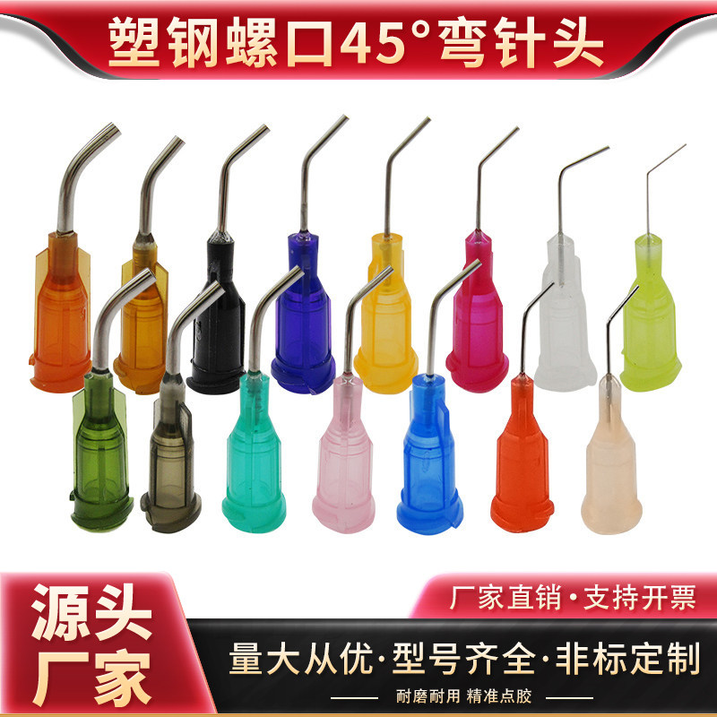 45°弯针头点胶机针头定制弯针头塑钢螺口精密弯角针嘴弯头点胶针