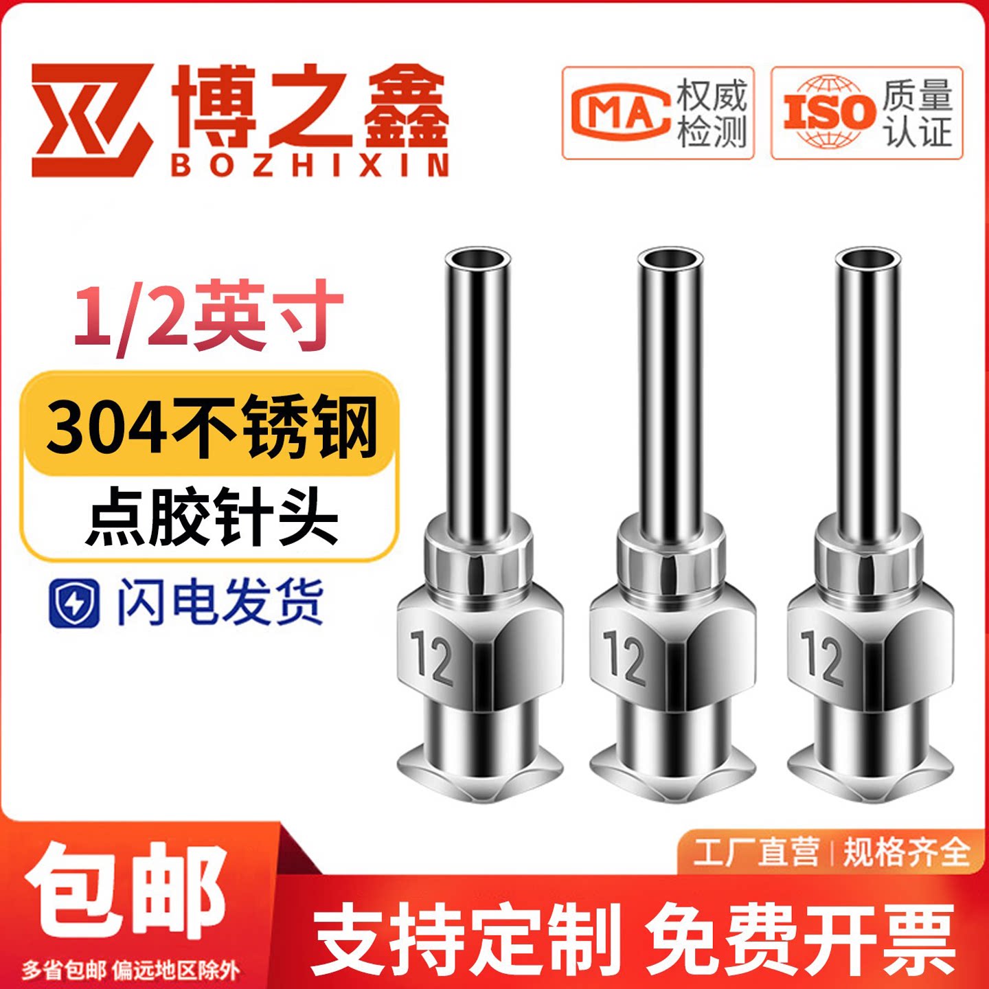 邦远不锈钢点胶针头12.5mm点胶机配件耗材精密注胶针嘴卡口可订制