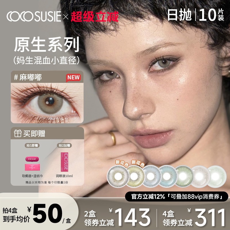 cocosusie美瞳日抛10片中小直径灰嘟嘟无锁边混血彩色隐形眼镜