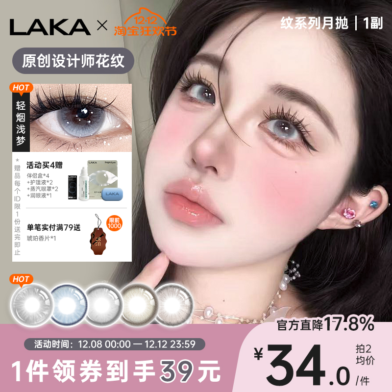 Laka蓝色美瞳月抛小直径混血棕自然彩色隐形眼镜舒适月抛轻烟浅梦