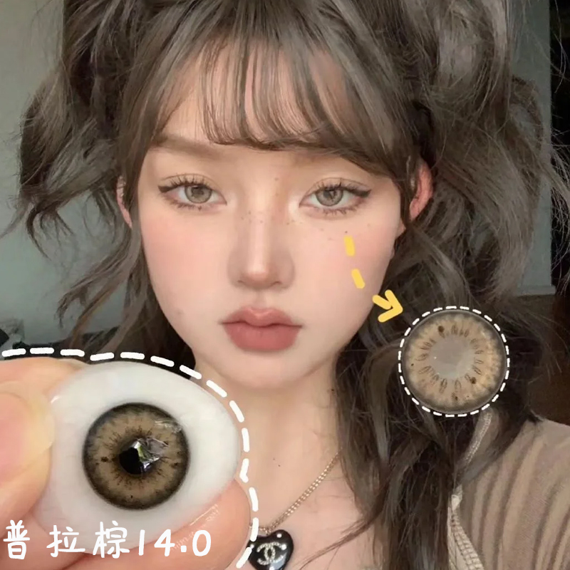 新款14.2mm小直径美瞳混血欧美风克拉灰色普拉棕色年抛隐形眼镜xy