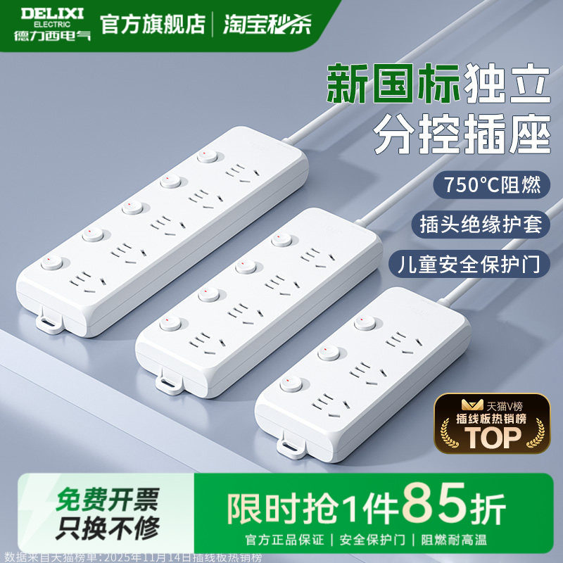 德力西官方插座插排插线板总开关接线板拖线板多功能排插插板家用