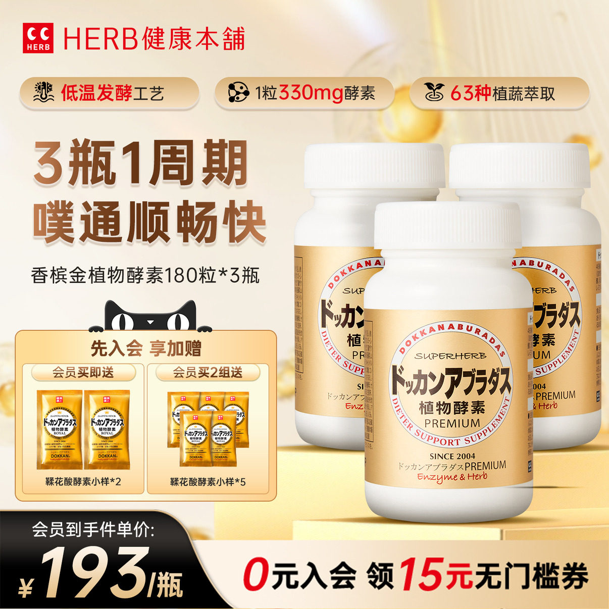 DOKKAN ABURADAS酵素PREMIUM香槟金加强版瓶装酵素3瓶装herb酵素