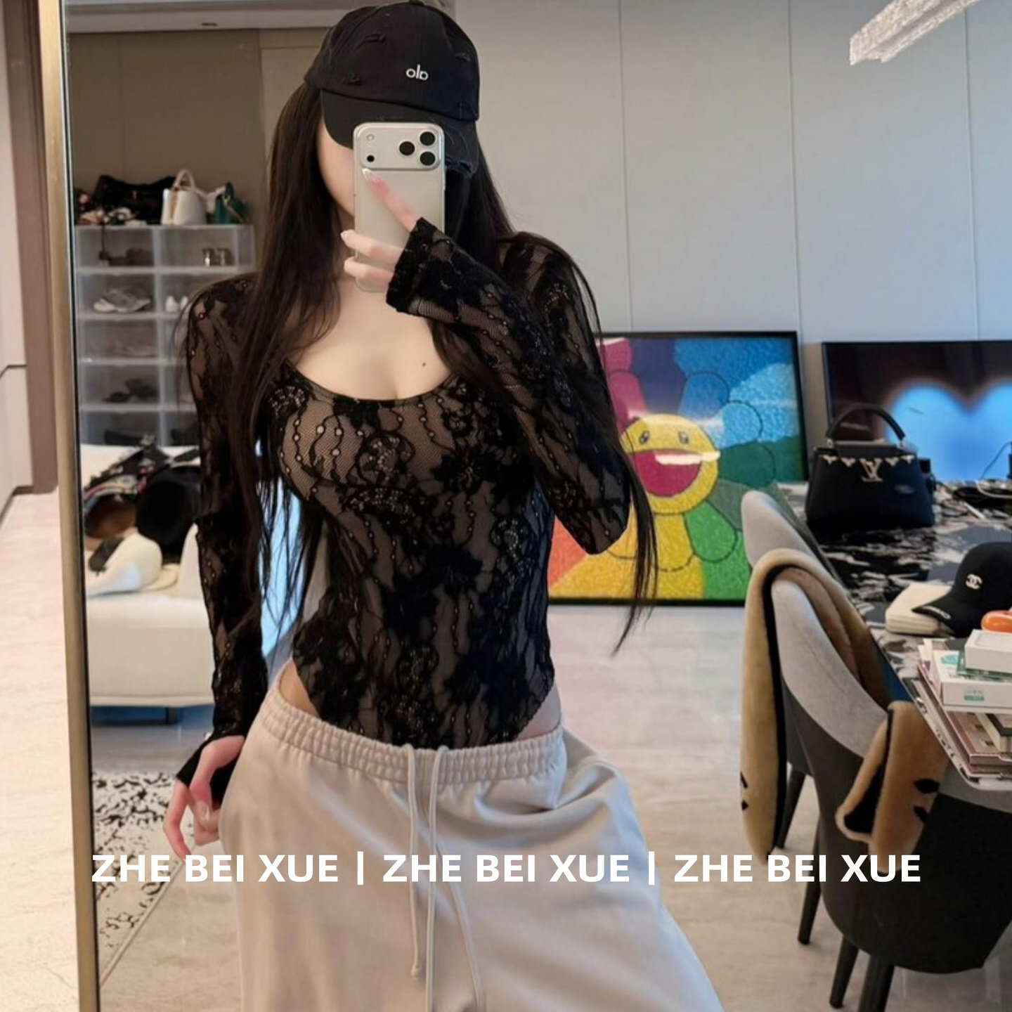 套装女纯欲性感风长袖蕾丝连体衣高腰显瘦长裤独特漂亮冬装一整套
