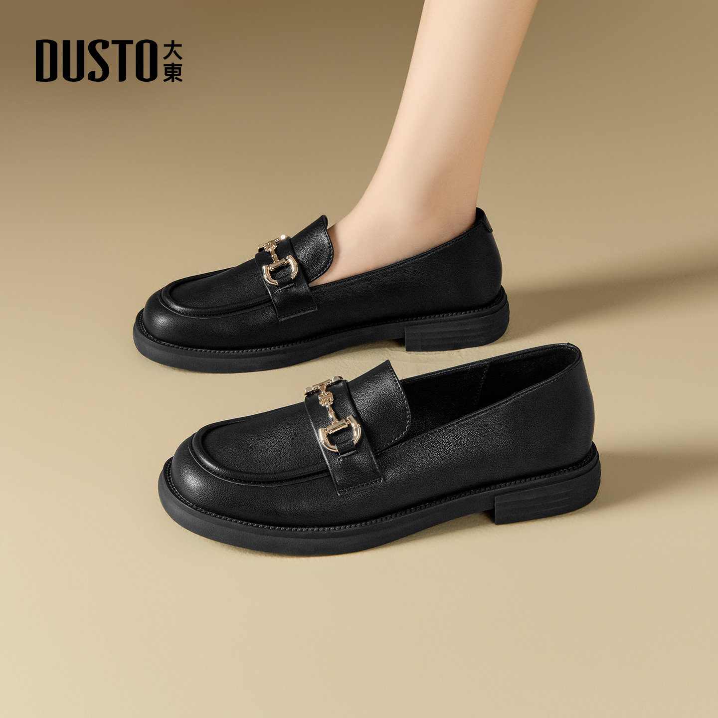 大东dd乐福鞋女款春季新款英伦风小皮鞋黑色鞋子复古单鞋通勤女鞋