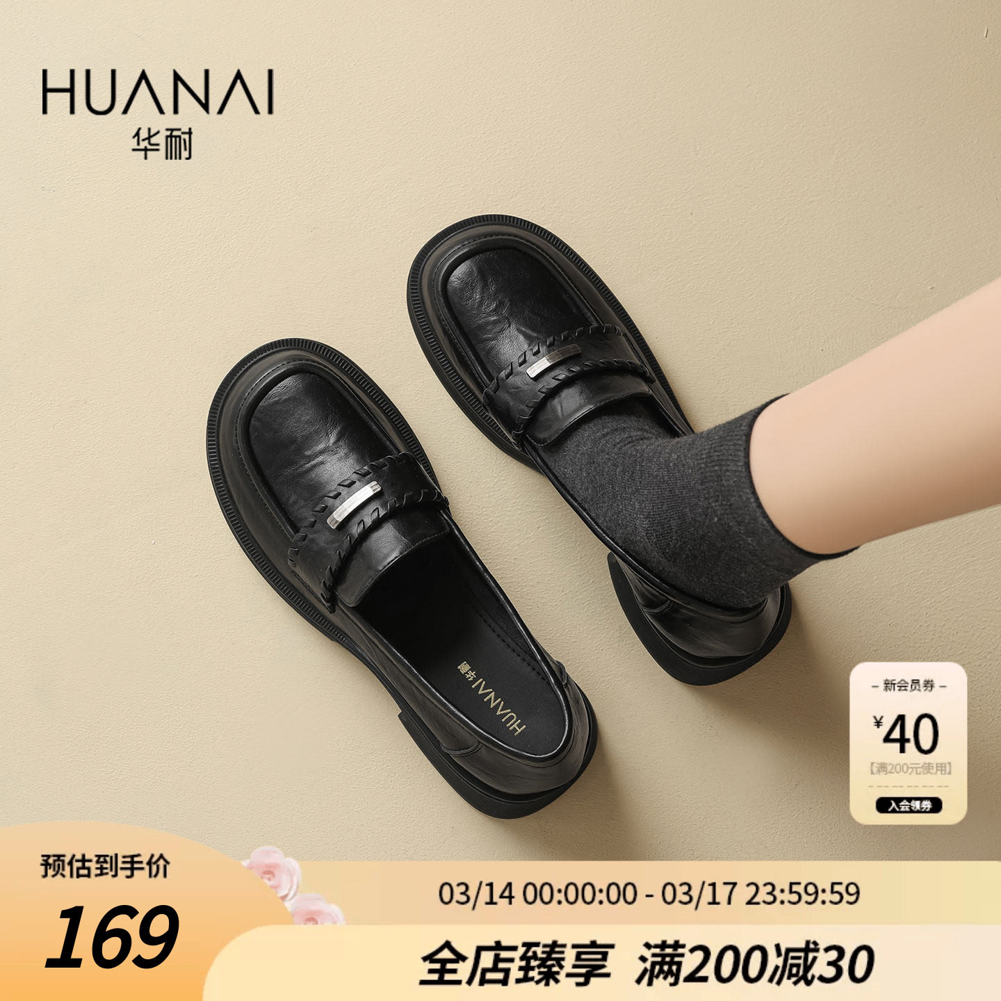 华耐黑色乐福鞋女2026新款秋冬通勤不累脚单鞋厚底英伦风小皮鞋女