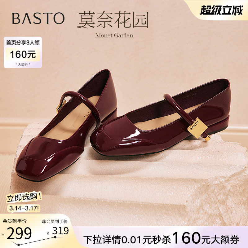 【乔欣明星同款】百思图莫奈花园26春新款红色玛丽珍鞋女单鞋婚鞋