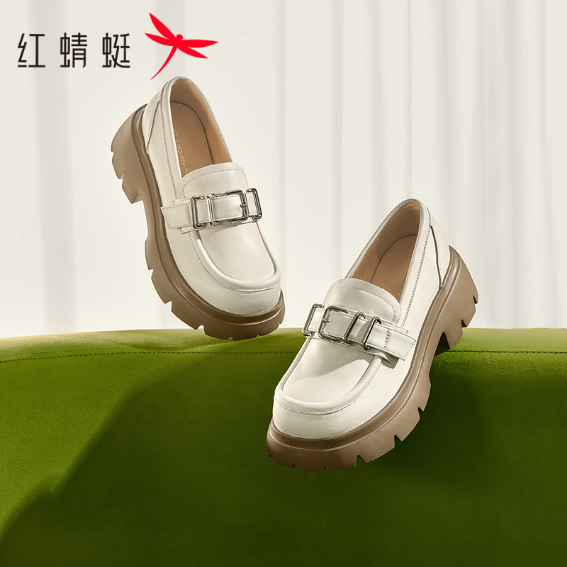 红蜻蜓白色乐福鞋女厚底2025新款真皮女鞋增高单鞋不累脚软底皮鞋