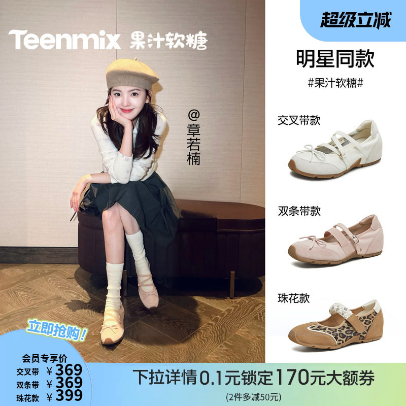章若楠同款天美意果汁软糖运动芭蕾德训玛丽珍鞋女内增高浅口单鞋